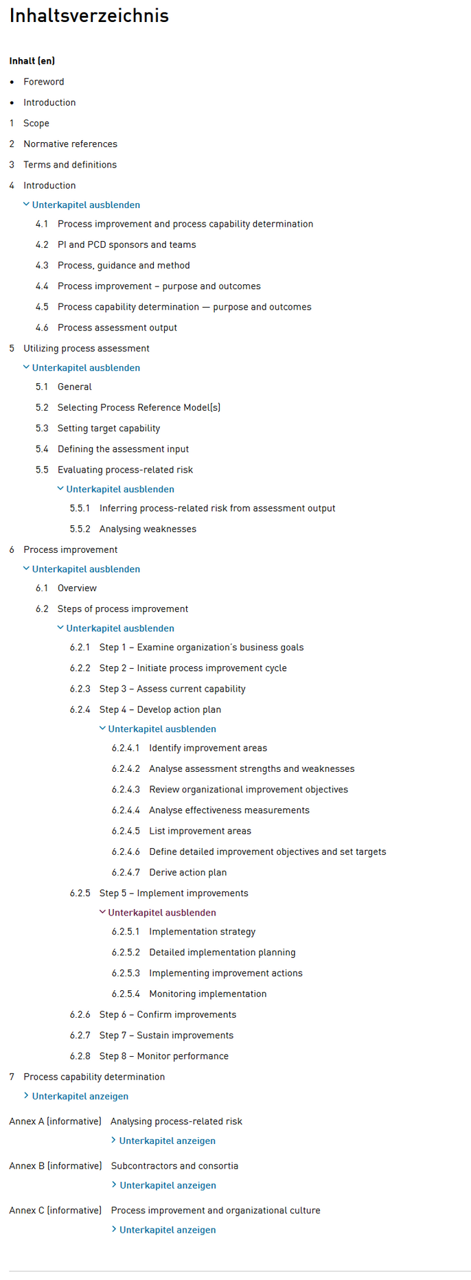 - die Verbesserung von Prozessen der eigenen Organisation (Process Improvement) und