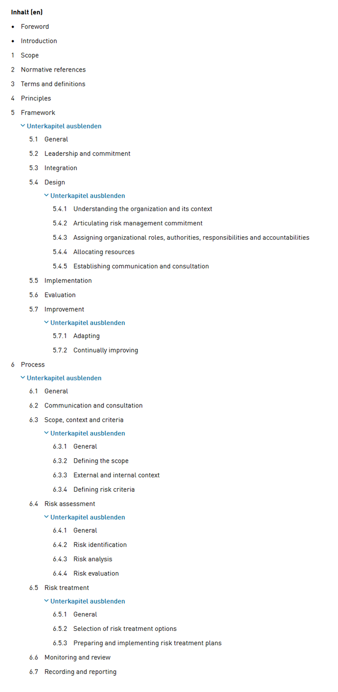Inhaltsverzeichnis ISO 31000